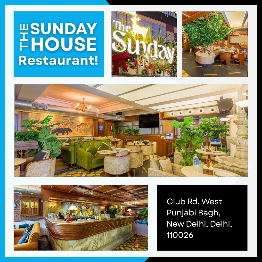 Explore The Sunday House, a uniquely designed restaurant in Club Road, West Punjabi Bagh, crafted by Principal 3D Designer Tanay Jaithaia with modern aesthetics and immersive ambia